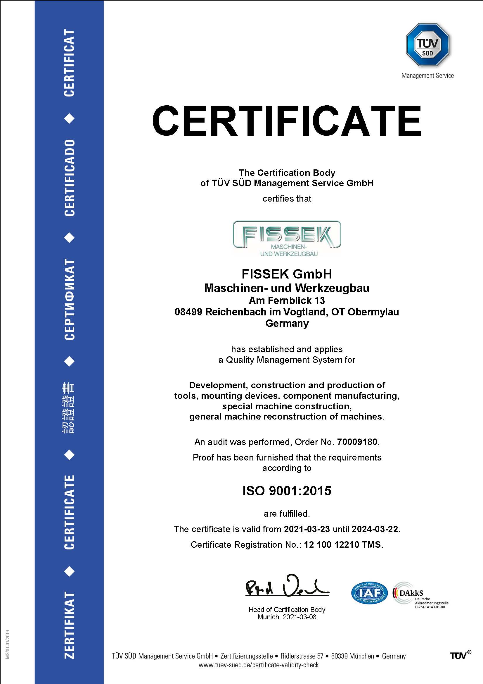 A continuous and conscientious quality assurance according to DIN EN ISO 9001:2015 is the basis for the excellent and exemplary cooperation with all our customers.